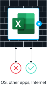The secure enclave is implemented through a light weight driver which envelopes applications in a wrapper, similar to a firewall, controlling all interaction with the OS. Application activities and the resources they use are virtualized and encrypted, rendering them invisible to anything outside Venn. Venn’s configurable policies control which applications are purposed for work and only applications assigned to a user by an admin are permitted to run in Venn.