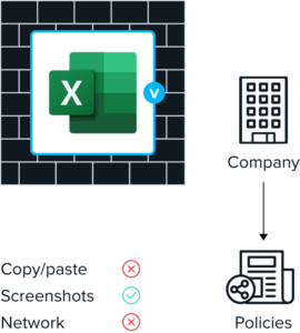 Work lives in a company-controlled secure enclave installed on the user’s computer, where all data is encrypted and access is managed. Work applications run locally within the enclave – visually indicated by the Blue Border™ – where business activity is isolated and protected from any personal user on the same computer.