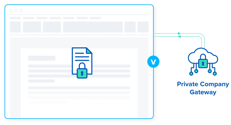 access is policy–controlled and routed through encrypted private company gateway